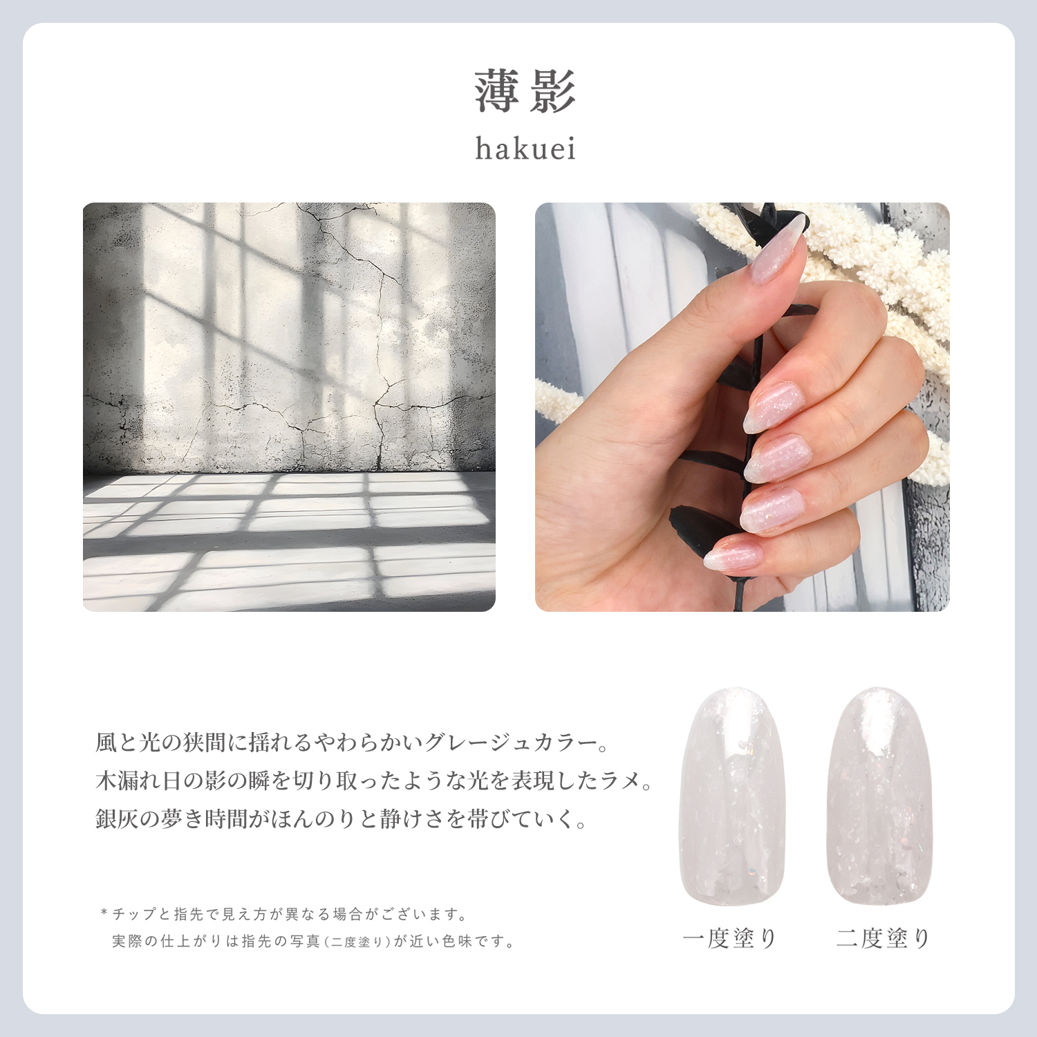 木漏れ日の影の瞬を切り取ったような光を表現したラメ。