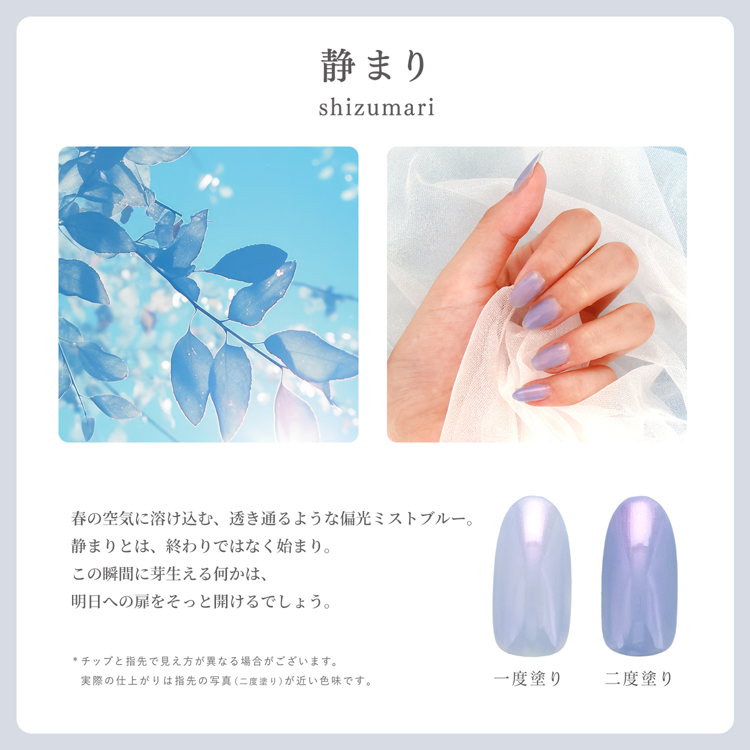 春の空気に溶け込む、透き通るような偏光ミストブルー。