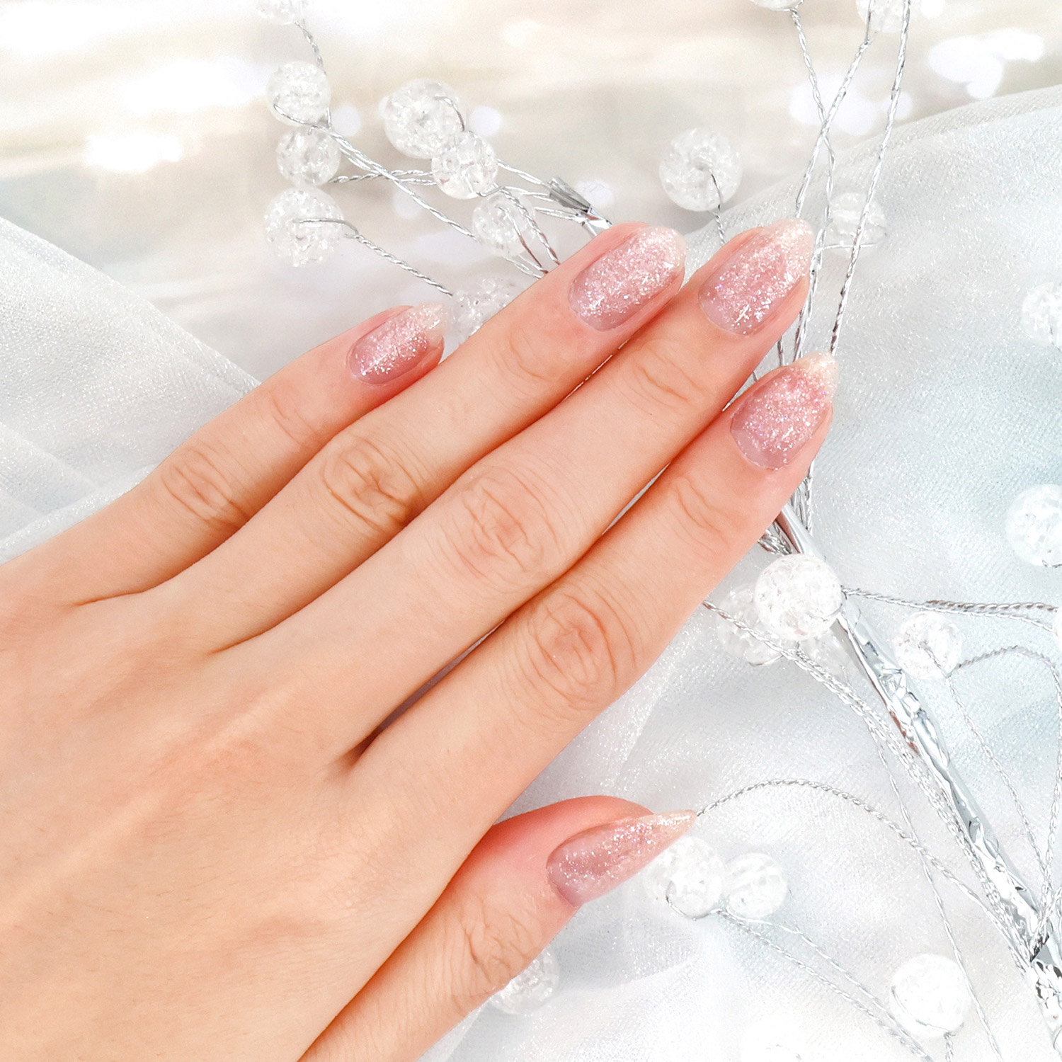 透き通るような微細ラメが瞬くシャンパンカラー。