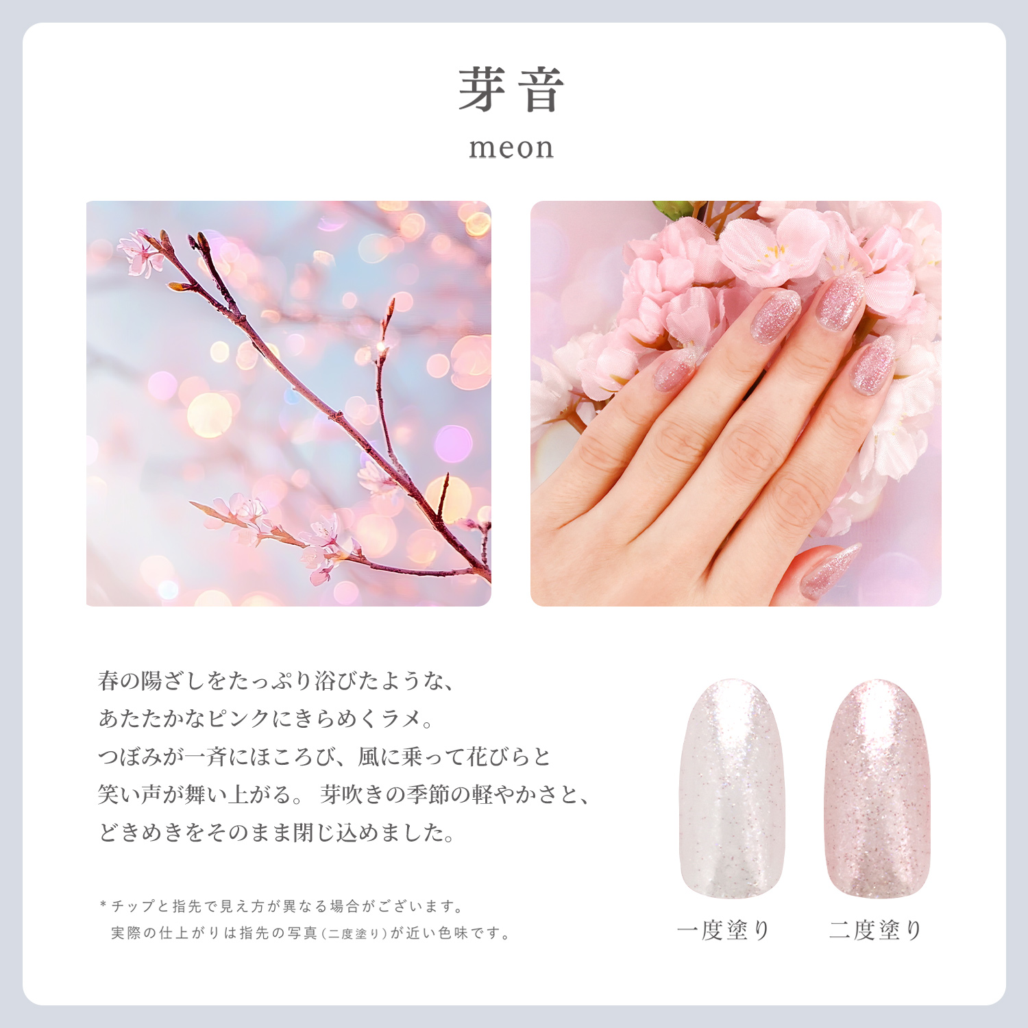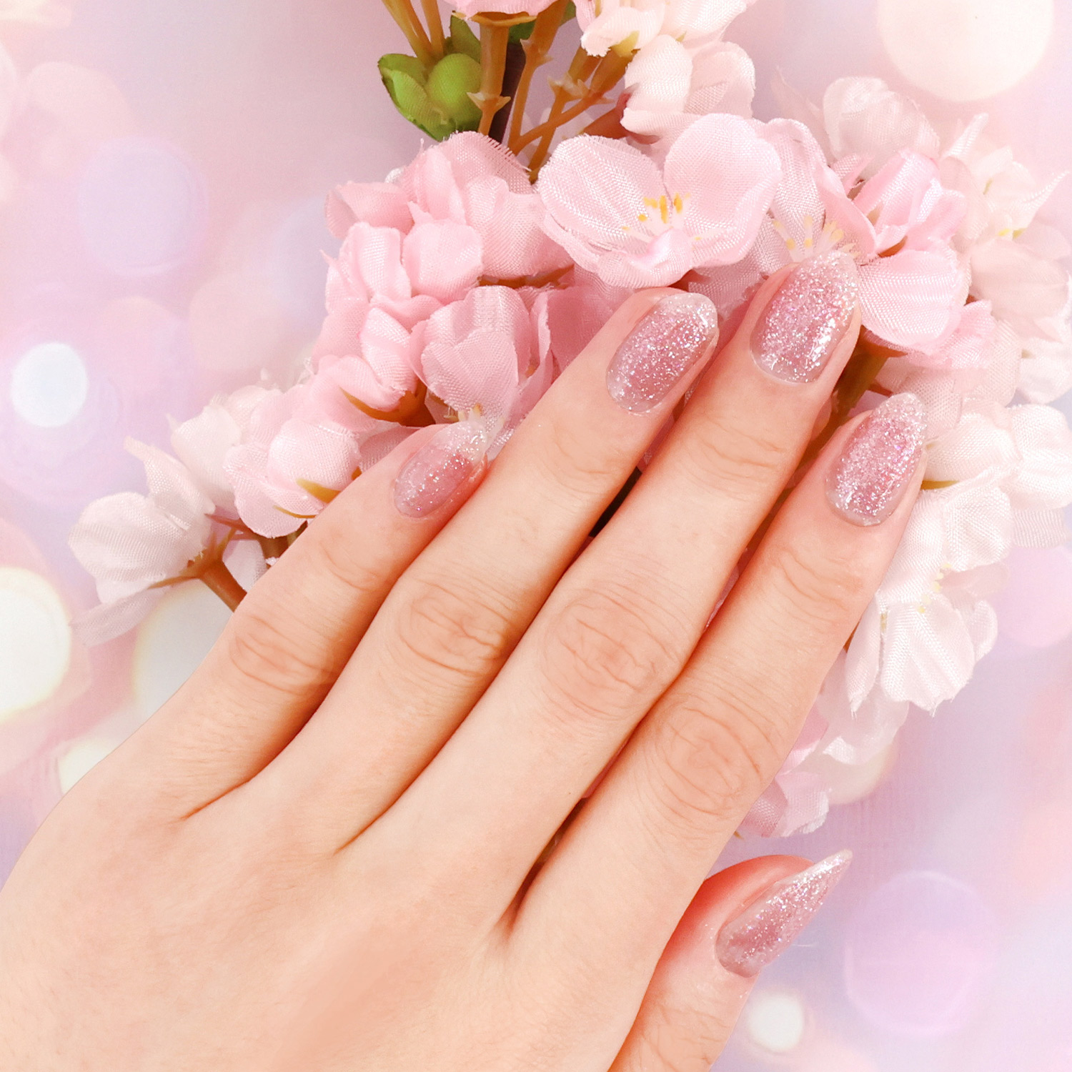 春の陽ざしをたっぷり浴びたような、あたたかなピンクにきらめくラメ。