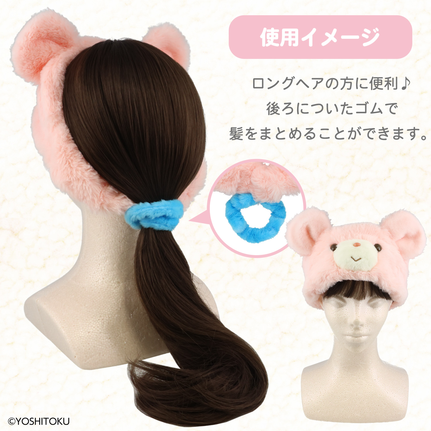 【商品名】吉徳巾着付きヘアターバン <クリーミーねこ>