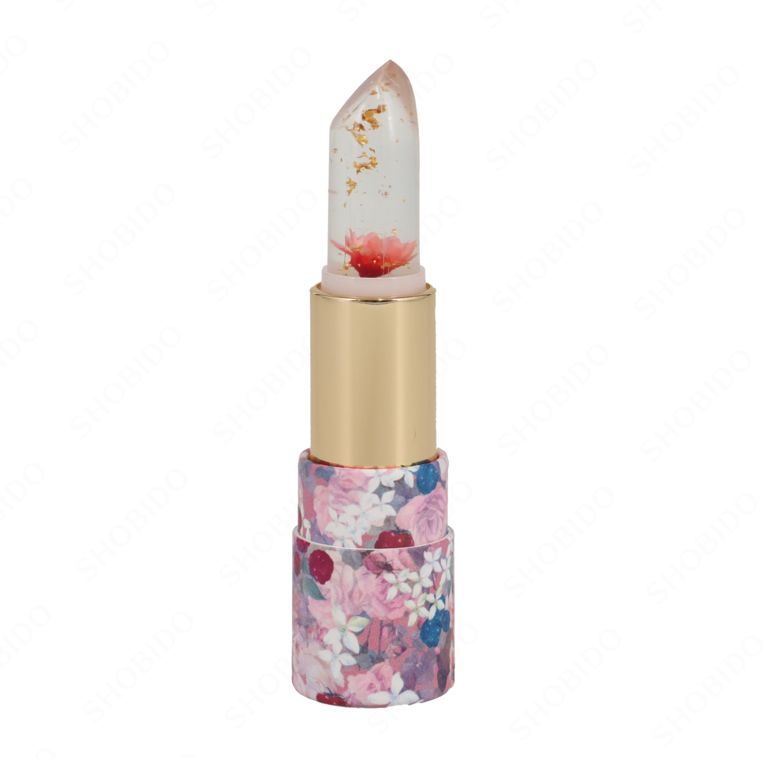 クリアカラーのリップスティックに金箔とお花をプラス。