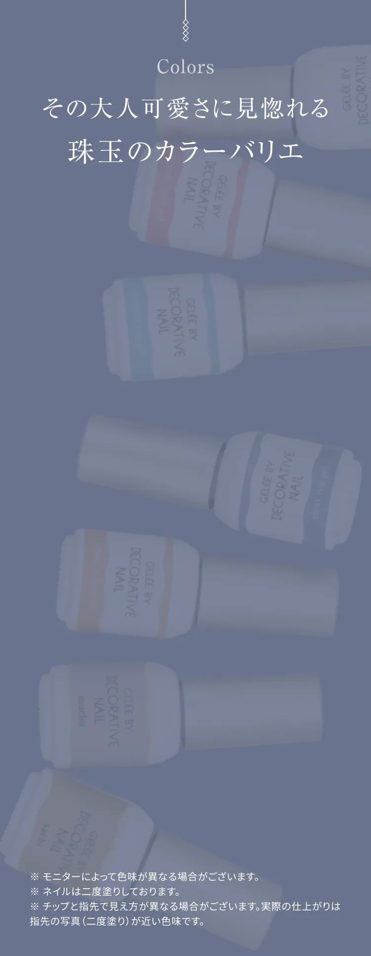 他の画像を見る NEW ラッピング対象商品 3箱同時購入で1箱分無料 ジェリーバイ デコラティブネイル < カラージェル > 21色 ジェルネイル 粧美堂 SHOBIDO お気に入りに登録する 販売価格 ¥ 880 税込