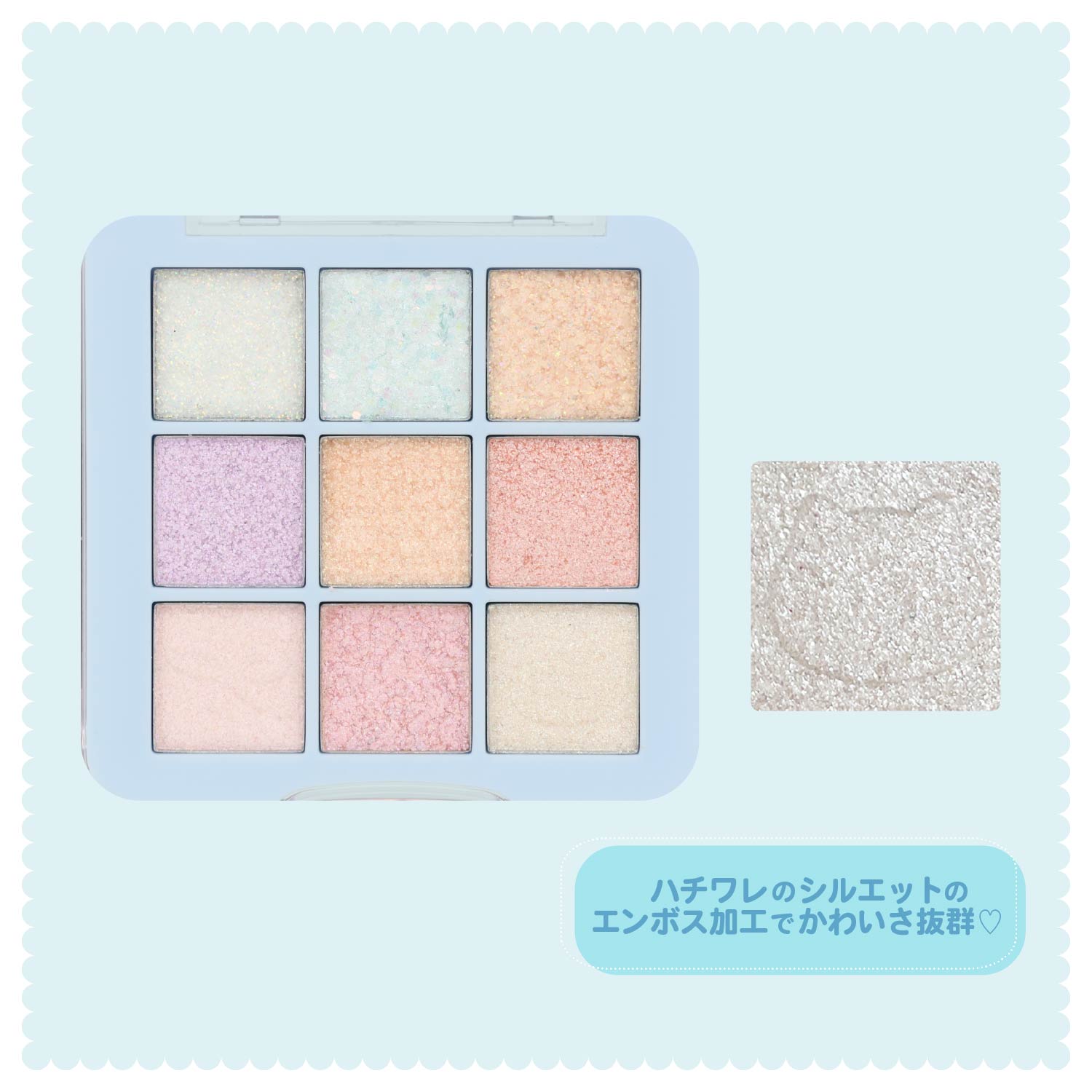 ちいかわたちのシルエットがエンボスされたアイシャドウパレット!