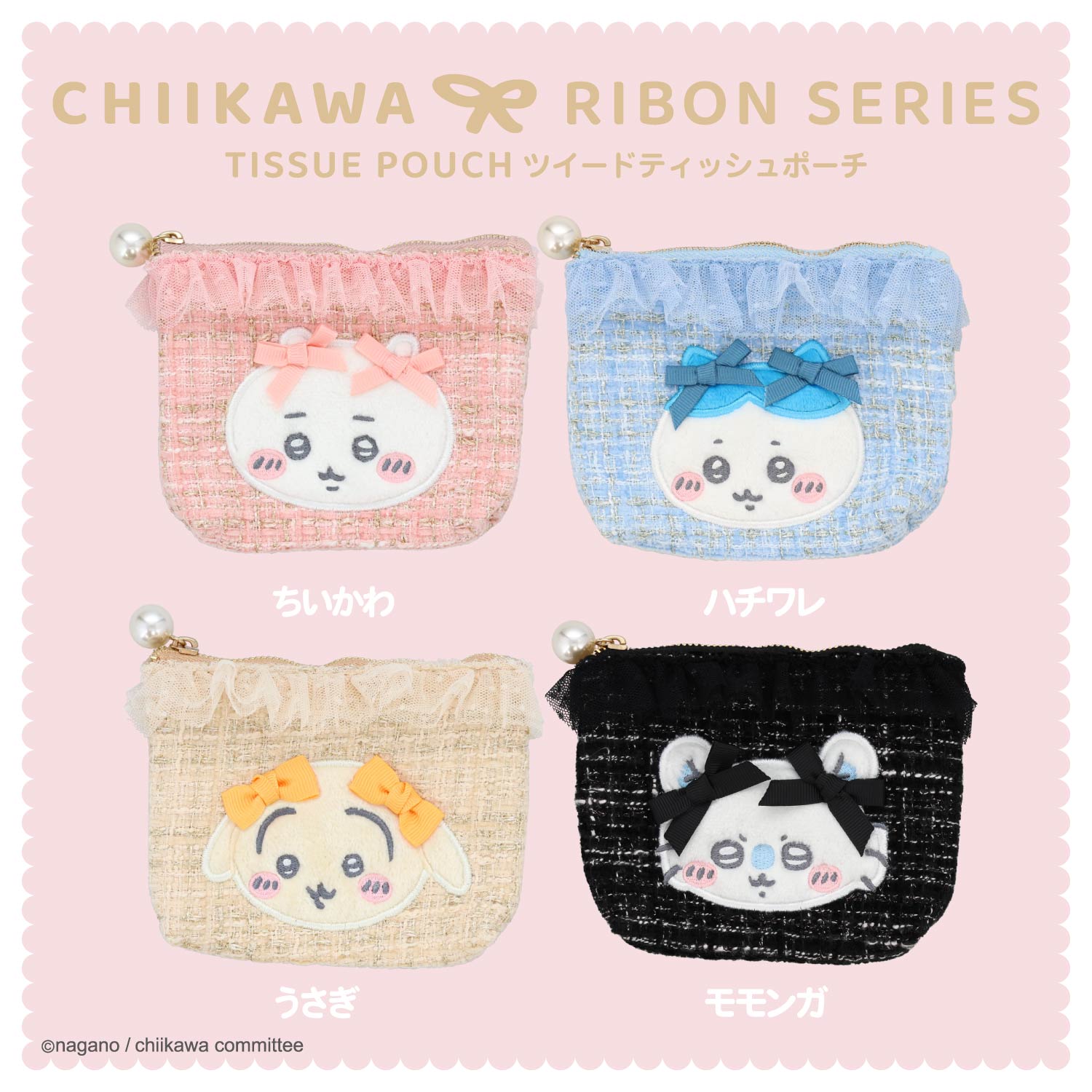 ちいかわ リボンシリーズ ツイードティッシュポーチ