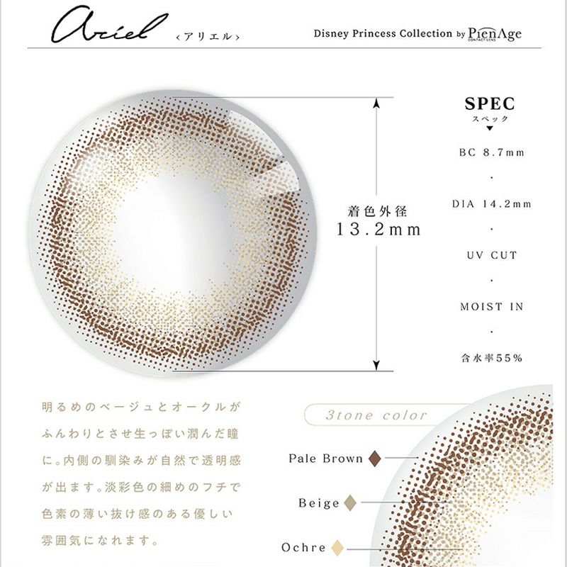 他の画像を見る ディズニープリンセス 2week アリエル ベージュ×ペールブラウン [6枚入] Disney Princess Collection by PienAge PA-DN93468 3箱同時購入で1箱分無料 販売価格 ¥ 2,420 税込 5.00 (1)