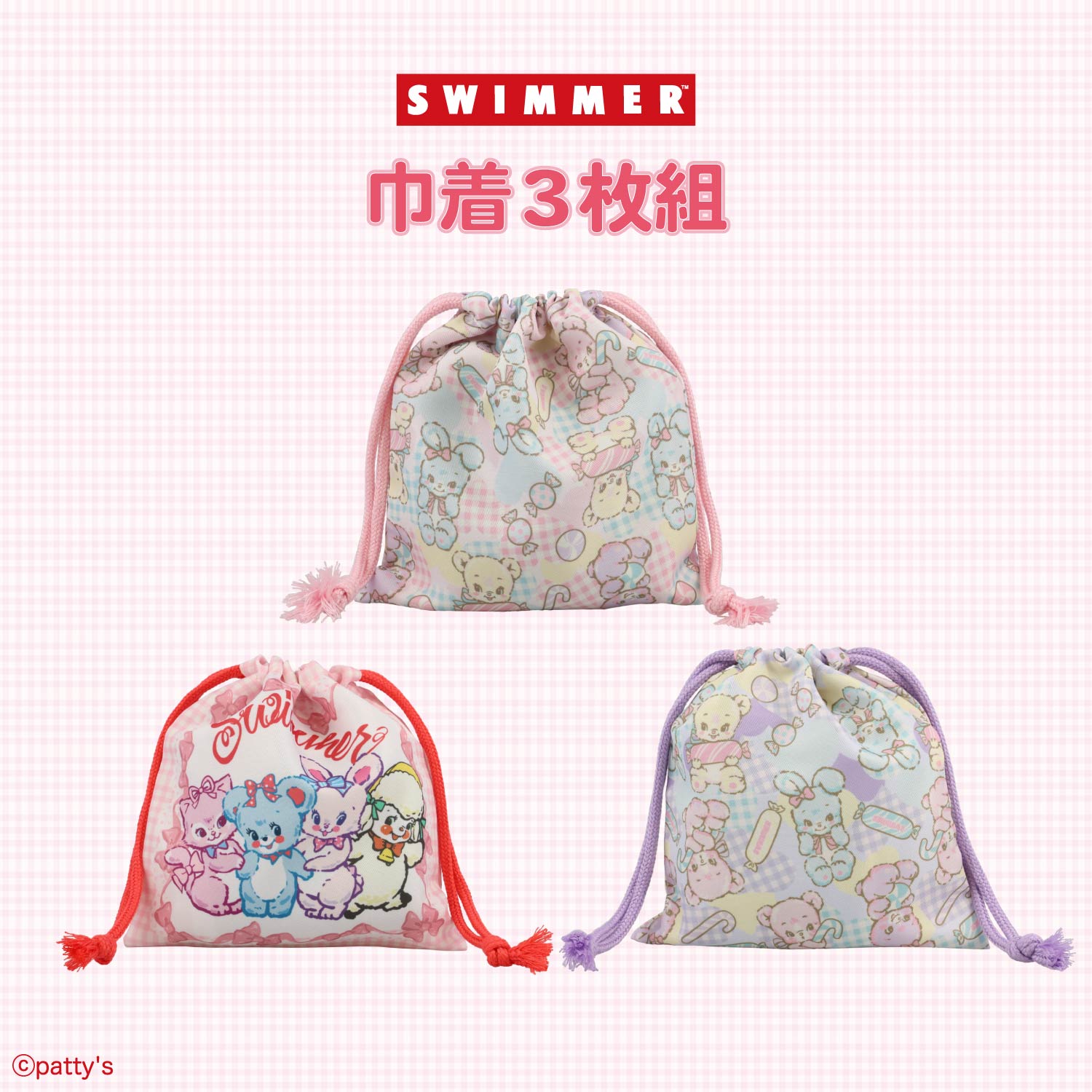 SWIMMER 入園入学シリーズ 巾着3枚組