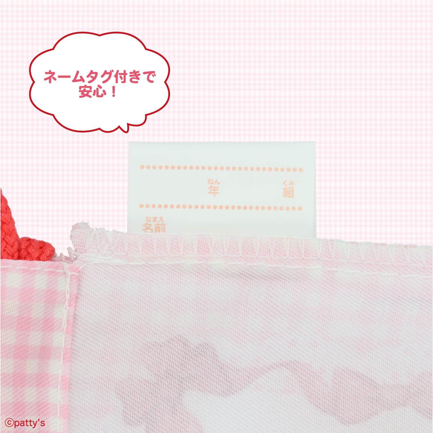 内側にはお名前・年・組のネームタグが付いています。