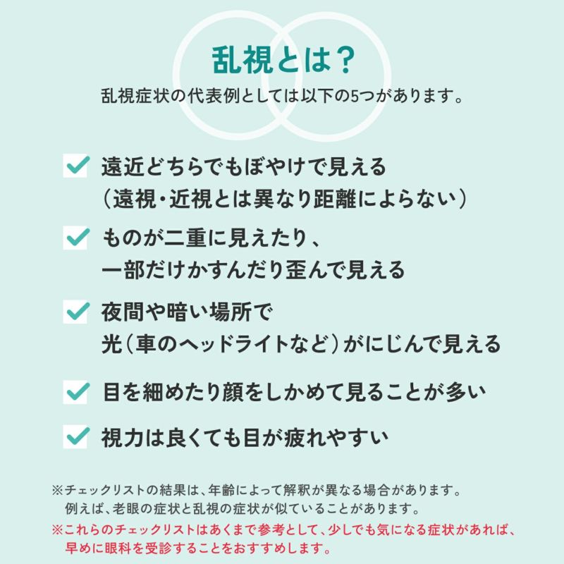 ■コンタクトレンズは高度管理医療機器です。必ず眼科医等にて検査を受け、指示書に基づきご購入ください。 ■当店ではお客様に安全にコンタクトレンズを使用していただく為に、ご購入前に下記項目のご確認をお願いしております。