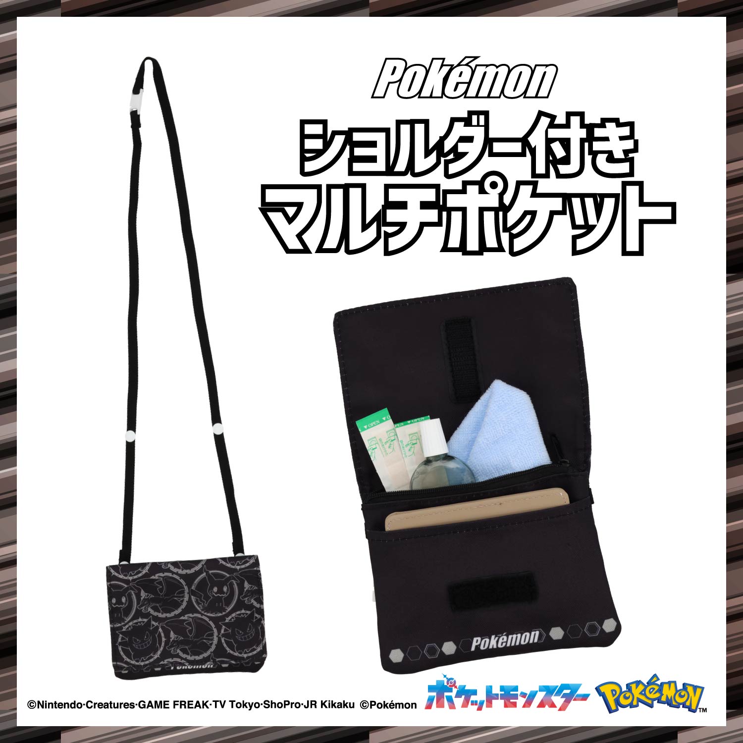 【商品名】ショルダー付マルチポケット<ポケモンBK>