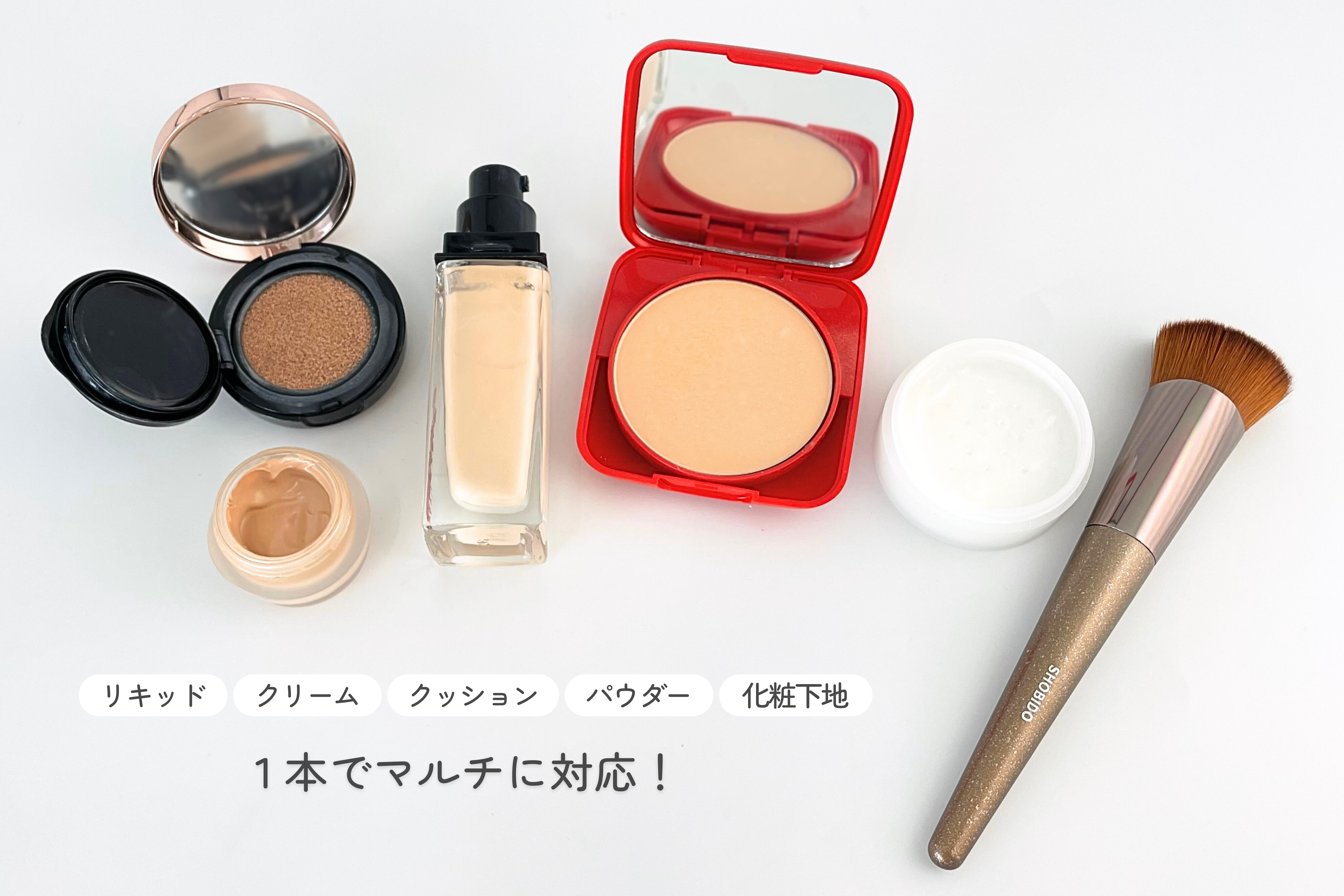 あらゆるタイプのファンデーションに対応 リキッド/クリーム/クッション/パウダー/化粧下地 など