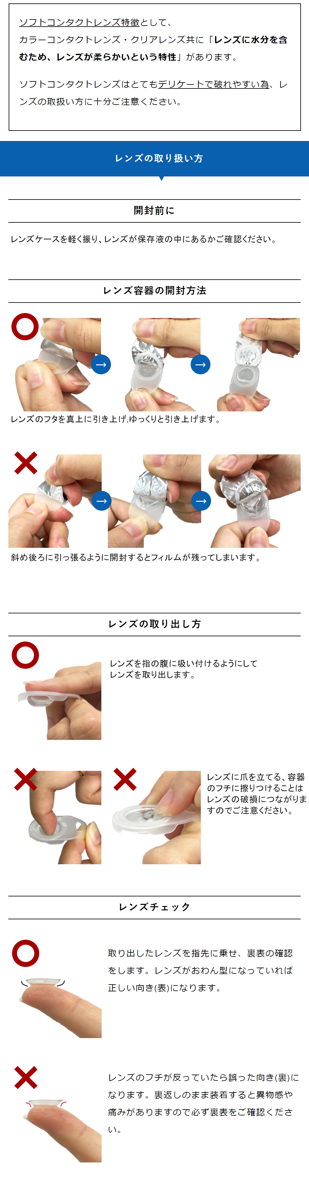 レンズの取り扱い方法