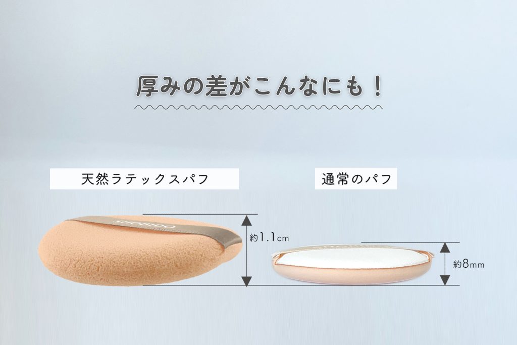天然ラテックスを主原料としたふわふわでもちもちの弾力を持つスポンジは、肌に優しく、薄づきでムラになりにくい特徴があります。