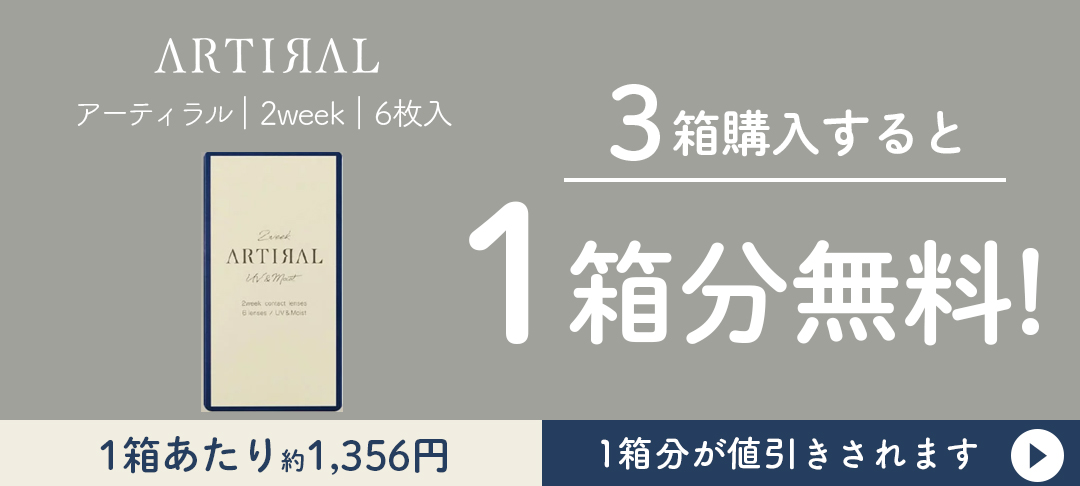 3箱購入で1箱無料!“今”いちばんお得に買える!まとめ買い 2026.01.30 “今”いちばんお得3箱同時購入で1箱分が無料で買える! en Giorno (アンジョルノ)/ 1Month 全カラーをチェックする en Giorno (アンジョルノ)/ 2Week 全カラーをチェックする ARTIRAL 55(アーティラル 55)/ 1day(30枚入) 全カラーをチェックする ARTIRAL(アーティラル)/ 1day(30枚入) 全カラーをチェックする ARTIRAL(アーティラル)/ 2week(6枚入) 全カラーをチェックする ピエナージュ ミミジェム / 1day(10枚入) 全カラーをチェックする カテゴリー コンタクト 前の特集を見る 初心者の方でも簡単に“サロンのような仕上がり”ジェリーバイ デコラティブネイル 次の特集を見る 大人も虜に!?セボンスター前髪クリップがアラサー女子に大人気の理由 特集一覧に戻る