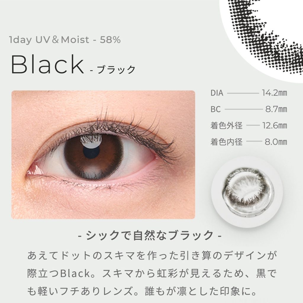 含水率58%の柔らかめレンズで装用感を求める方におすすめ 【ワンデー/ 高含水 / UVモイスト / DIA 14.2mm / BC8.7mm】