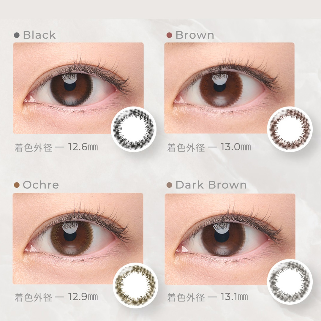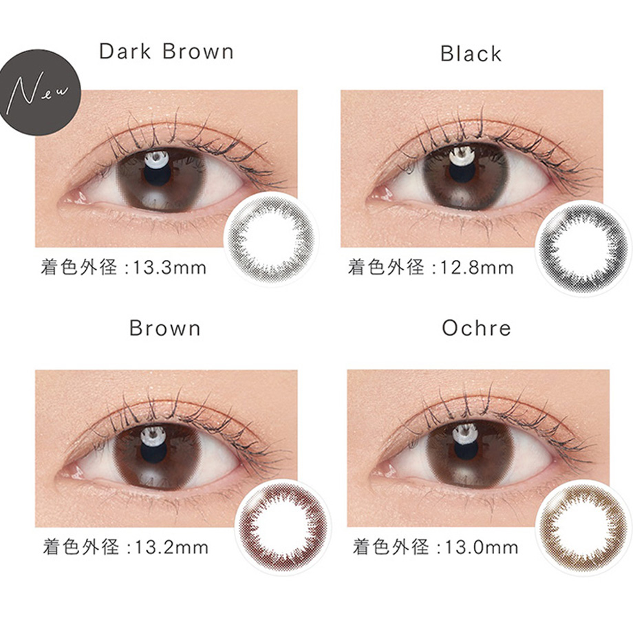 新色ダークブラウンも加わった全4色展開。瞳に色にあわせて選べるカラーです。