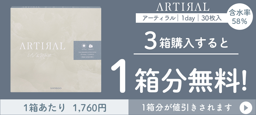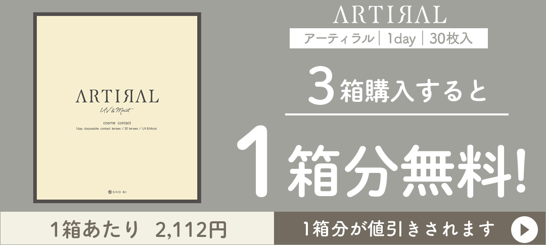 カラコンしている事がバレたくない。学校や会社で使いたい。カラコン感は出したくないけど、裸眼は少し盛りたい。そんな人にオススメのアーティラル。毎日使いに嬉しい30枚入り。